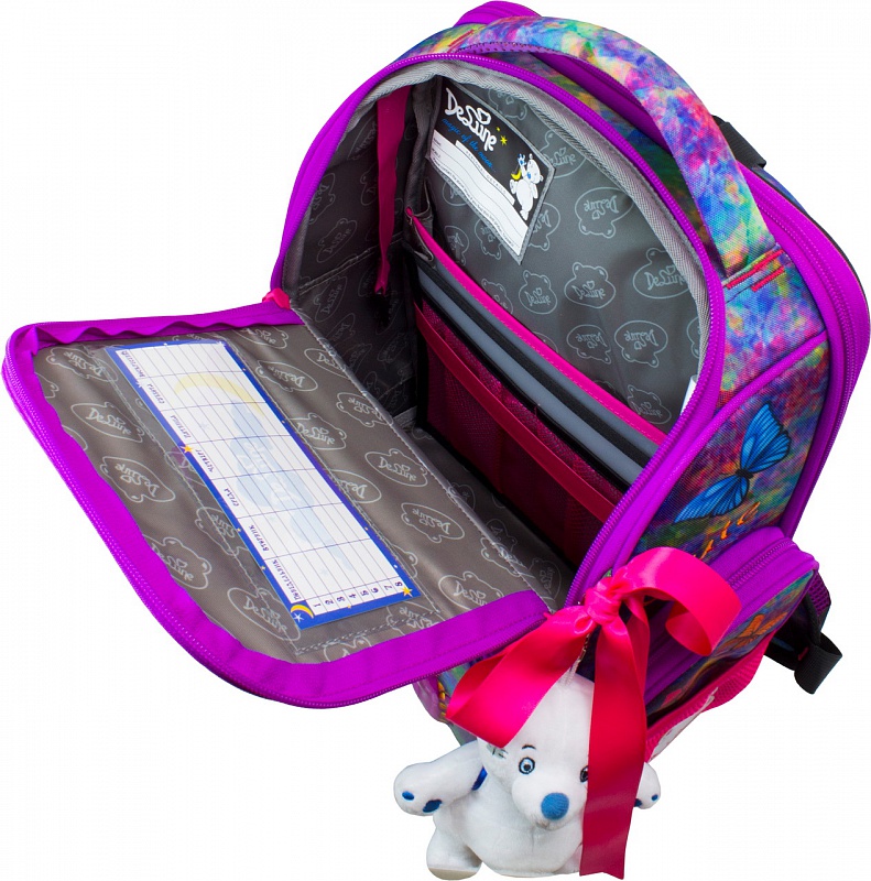 Ранец школьный с ортопедической спиной DeLune 11-028 + мешок + мишка + ленточка