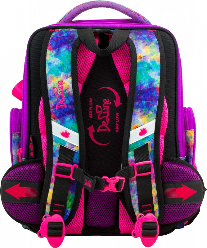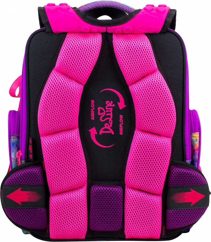 Эргономичная спинка ранца, разработана по новым технологиям, учитывающие особенности анатомии ребенка. Позвоночник защищен специально сконструированной спинкой с саморегулирующей боковой поддержкой, которая при ходьбе не позволяет смещаться ранцу в стороны, надежно фиксируя на пояснице, и подходит ребенку любой комплекции. Надежная фиксация делает ношение максимально удобным.
