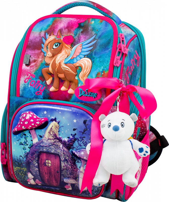 Ранец школьный с ортопедической спиной DeLune 11-029 + мешок + мишка + ленточка