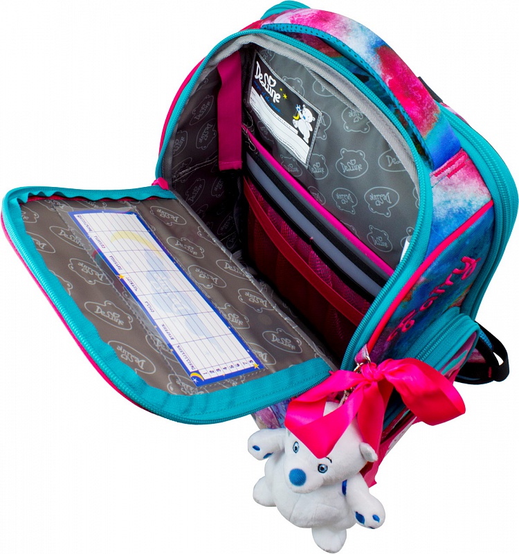 - Внутреннее оснащение ранца разработано по специальной системе распределения вещей «Open access», что позволяет удобно распределить школьные принадлежности ребенка.