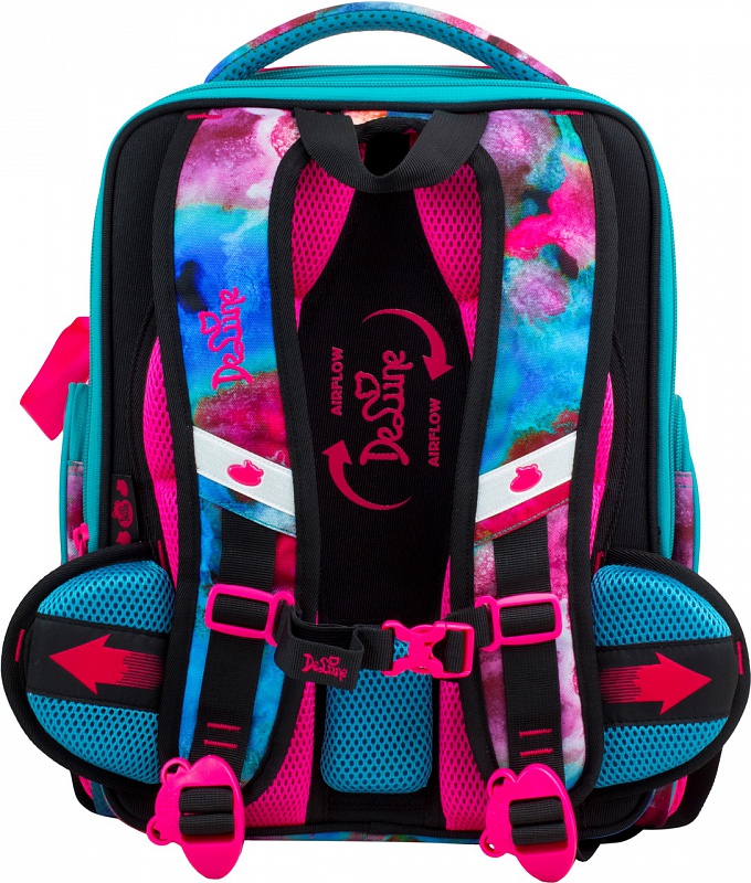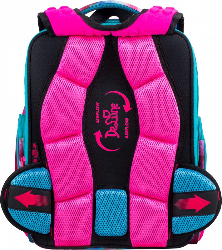 Эргономичная спинка ранца, разработана по новым технологиям, учитывающие особенности анатомии ребенка. Позвоночник защищен специально сконструированной спинкой с саморегулирующей боковой поддержкой, которая при ходьбе не позволяет смещаться ранцу в стороны, надежно фиксируя на пояснице, и подходит ребенку любой комплекции. Надежная фиксация делает ношение максимально удобным.