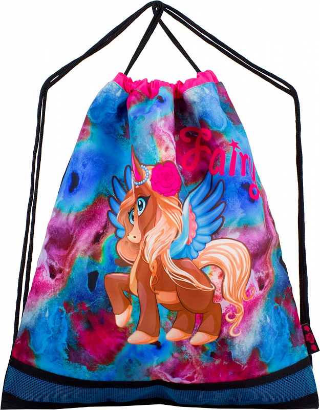 - Мешок для сменной обуви, декорированный под ранец, с сеточкой для циркуляции воздуха.