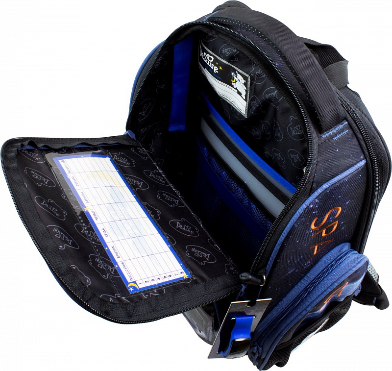 - Внутреннее оснащение ранца разработано по специальной системе распределения вещей «Open access», что позволяет удобно распределить школьные принадлежности ребенка.