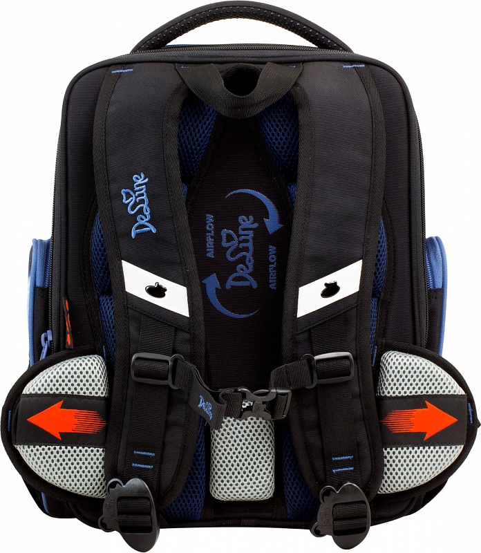 Эргономичная спинка ранца, разработана по новым технологиям, учитывающие особенности анатомии ребенка. Позвоночник защищен специально сконструированной спинкой с саморегулирующей боковой поддержкой, которая при ходьбе не позволяет смещаться ранцу в стороны, надежно фиксируя на пояснице, и подходит ребенку любой комплекции. Надежная фиксация делает ношение максимально удобным.