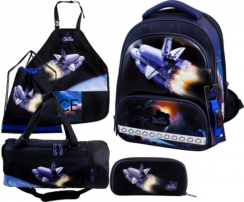 Ранец DeLune Full-set 9-126 + мешок + жесткий пенал + спортивная сумка + фартук для труда + часы