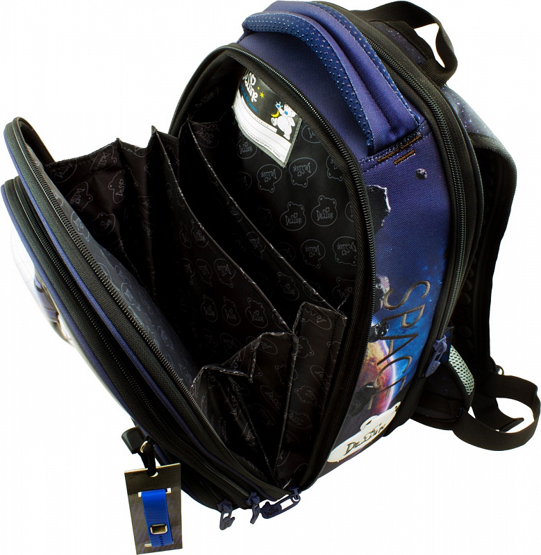- Внутреннее оснащение ранца разработано по специальной системе распределения вещей «Open access», что позволяет удобно распределить школьные принадлежности ребенка.