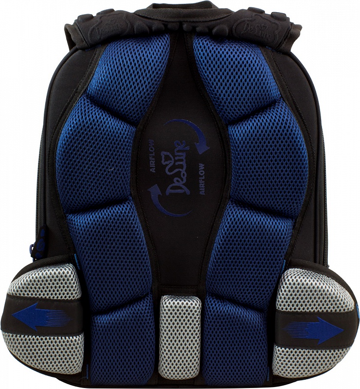 Эргономичная спинка ранца, разработана по новым технологиям, которые учитывают все особенности анатомии ребенка. Позвоночник защищен специально сконструированной спинкой с саморегулируемой боковой поддержкой, которая при ходьбе не позволяет смещаться ранцу в стороны, надежно фиксируя на пояснице, и подходит ребенку любой комплекции. Надежная фиксация делает ношение максимально удобным.