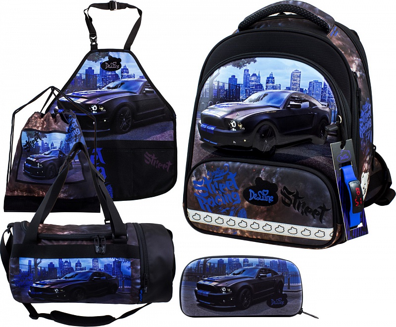 Ранец DeLune Full-set 9-130 + мешок + жесткий пенал + спортивная сумка + фартук для труда + часы*