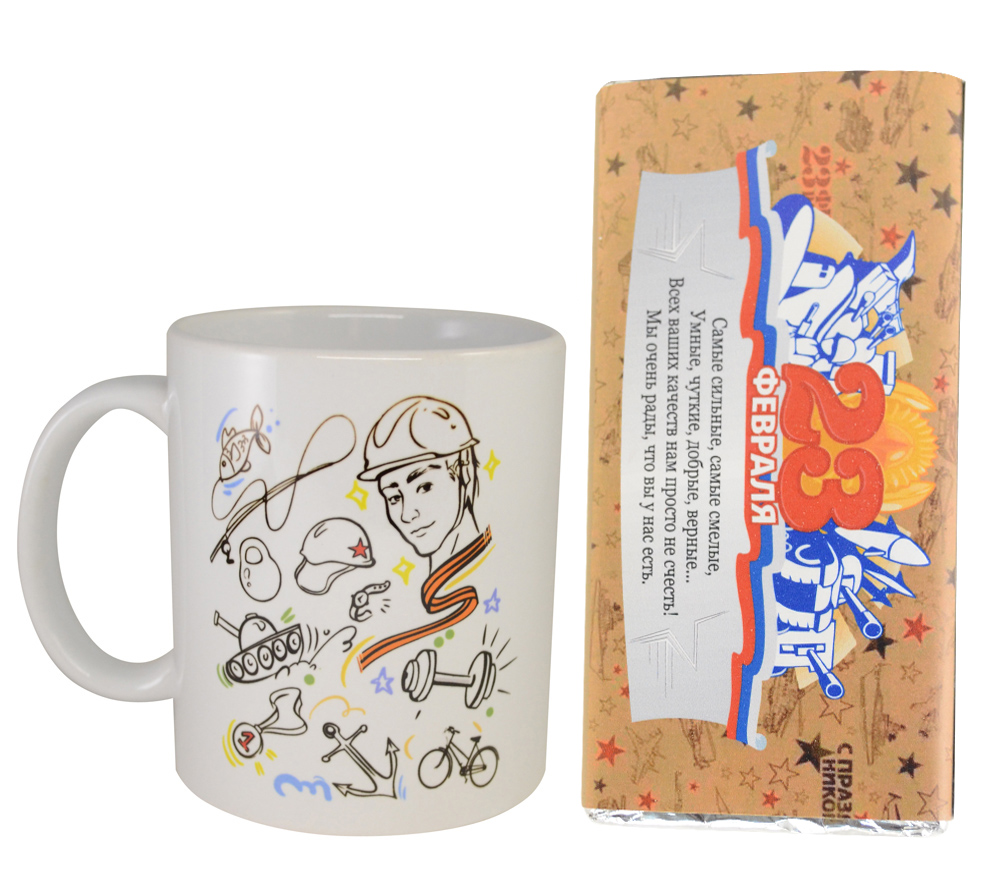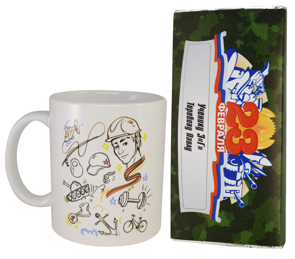 Подарочный набор состоит из кружки с именным шоколадом "Бабаевский" тематической обертке.