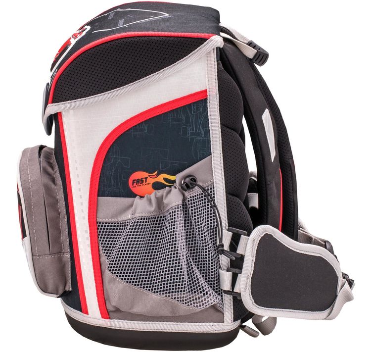 - По бокам ранец оснащен двумя карманами на утяжках, в которые можно поместить бутылку или ланч-бокс