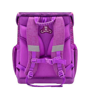 Пластиковое дно надежно оберегает учебники и тетради от воды и придает ранцу устойчивость. Ранец легко закрывается и открывается при помощи магнитного замка Fidlock. Широкие светоотражающие полоски по всему периметру ранца существенно повышают безопасность ребенка на дороге. Нагрудный ремень для оптимального распределения нагрузки. Боковые карманы на утяжке. Три вместительных внутренних отделения с кармашками внутри, спереди карман для пенала или ланч-бокса.