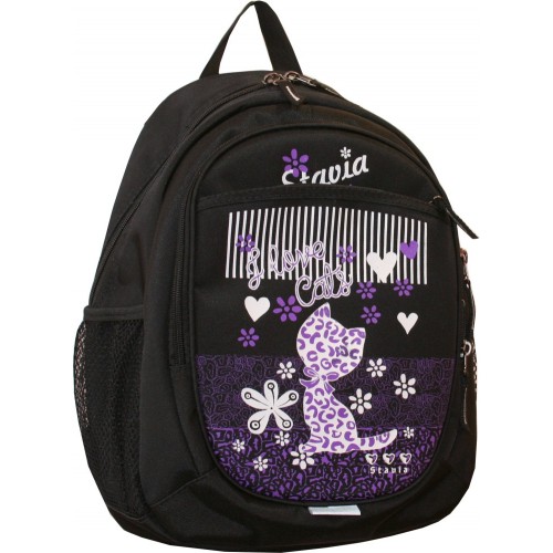 Рюкзак с облегченной ортопедической спинкой изготовлен из высококачественной водоотталкивающей ткани.