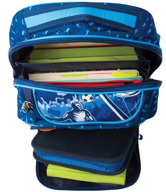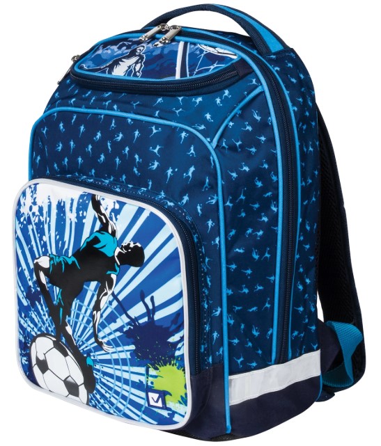 Рюкзак для мальчиков 7-10 лет. Внешне компактный, но вместительный рюкзак с жесткой спинкой и плотным дном. Качественные молнии легко открывать и закрывать. Яркий дизайн с футбольной тематикой обязательно приглянется юным любителям этого вида спорта.