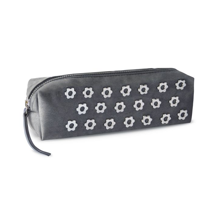 Пенал 1 отделение 20*6*6 см "Цветы-заклепки" искусственная кожа