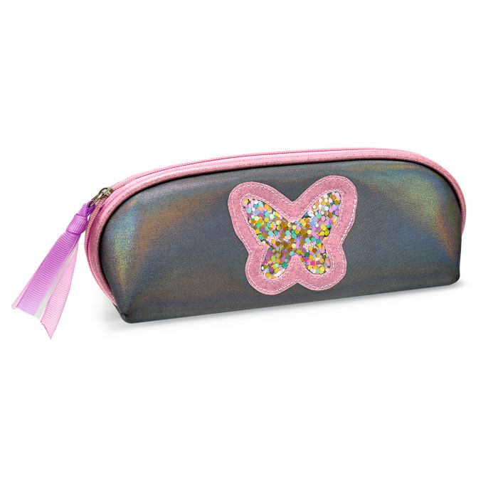 Пенал-косметичка 21*6*7,5 см "Блестящая бабочка" экокожа