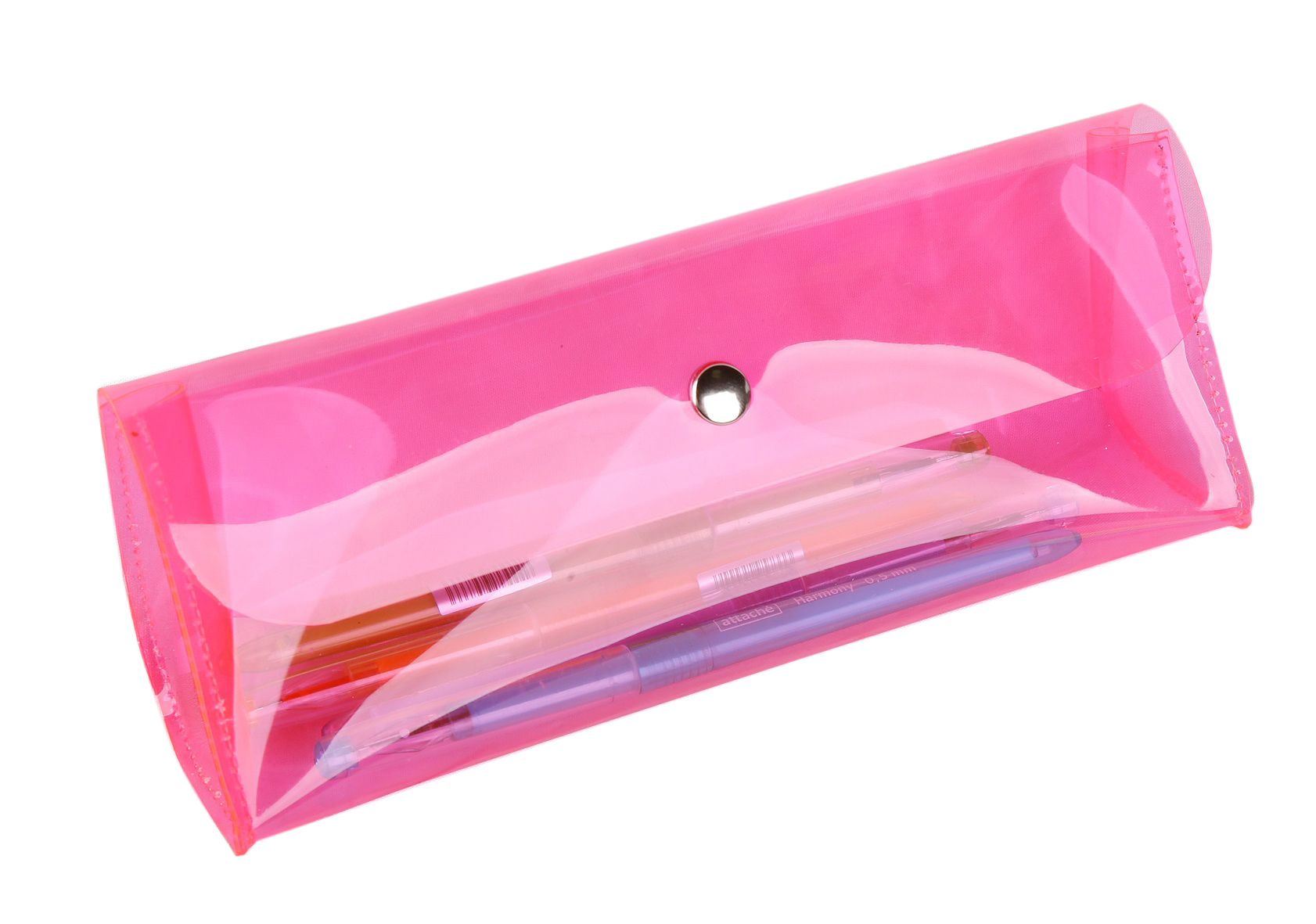 Мягкий пенал выполнен из флюоресцентного прозрачного пластика, без наполнения. Вместительное отделение закрывается на кнопку.