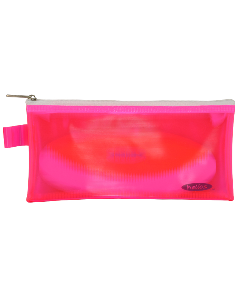 Пенал-косметичка одинарный, Helios, розовый, прозрачный пластик, молния