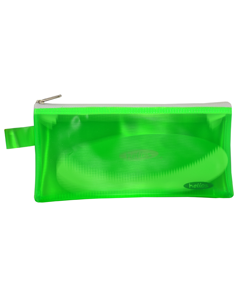 Пенал-косметичка одинарный, Helios, зеленый, прозрачный пластик, молния