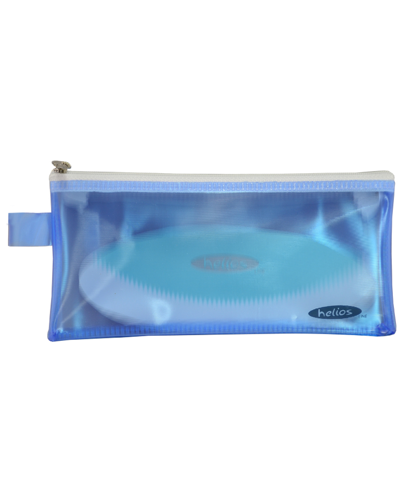 Пенал-косметичка одинарный, Helios, синий, прозрачный пластик, молния