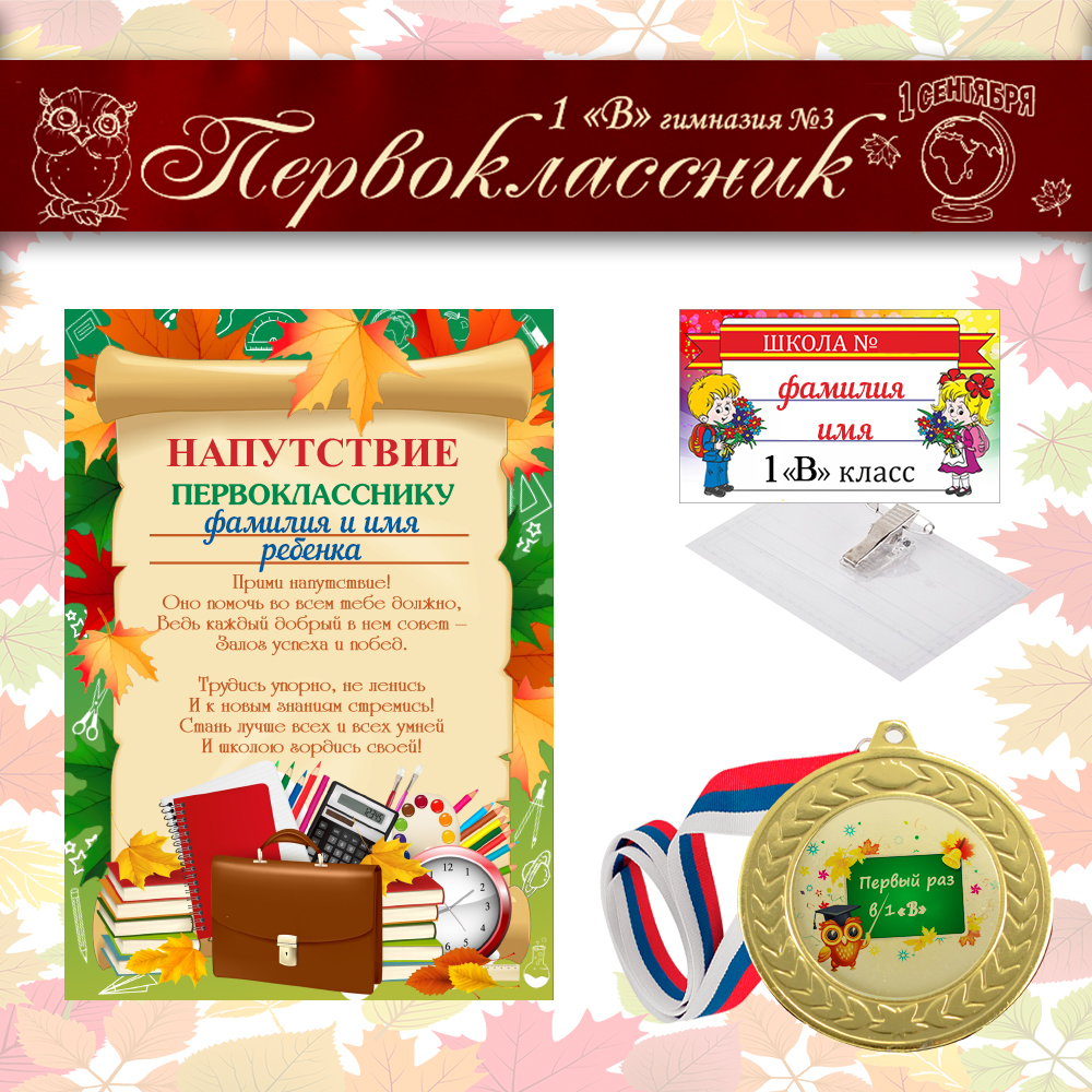 • В наборе: индивидуальная лента, именной бейдж, индивидуальная медаль, именное напутствие