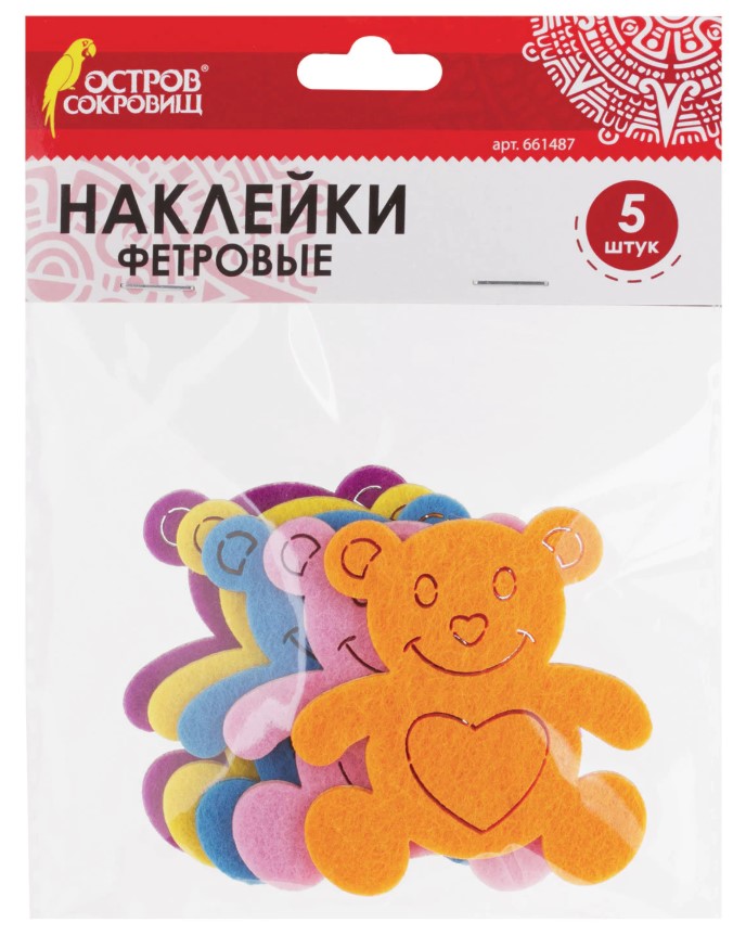 Наклейки из фетра "Мишки" 5 штук, ОСТРОВ СОКРОВИЩ 661487