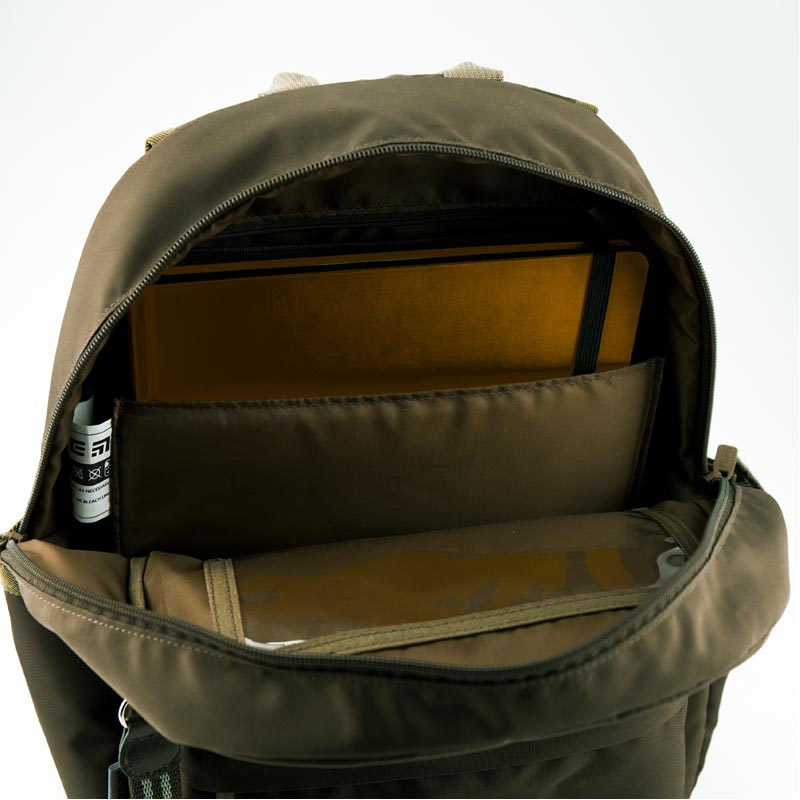 - Карманы: 1 объемный передний, 2 внутренних, прозрачный карманчик для расписания и 2 боковых кармана, которые расширяются на резинках.