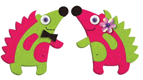 Забавные "2 ежика" - популярный среди молодежи стилизованный под игрушку двойной значок из фетра. Ребёнок старше 8 лет легко пришьёт "глазки" из пайеток с бисеринками, вышьет двумя стежками "ротик" на готовых деталях из цветного фетра, вставит английскую булавку в деталь из пластика и склеит значки как сэндвич из фетра, двусторонней самоклеящейся плёнки и пластика, украсит ёжика-мальчика фетровой "бабочкой", а ёжика-девочку - пайеткой-цветком. Можно разделить ёжиков - одного для себя, другого для друга - и носить по отдельности. Клей и ножницы не понадобятся! Этот оригинальный дизайнерский двойной значок будет отлично смотреться на одежде!