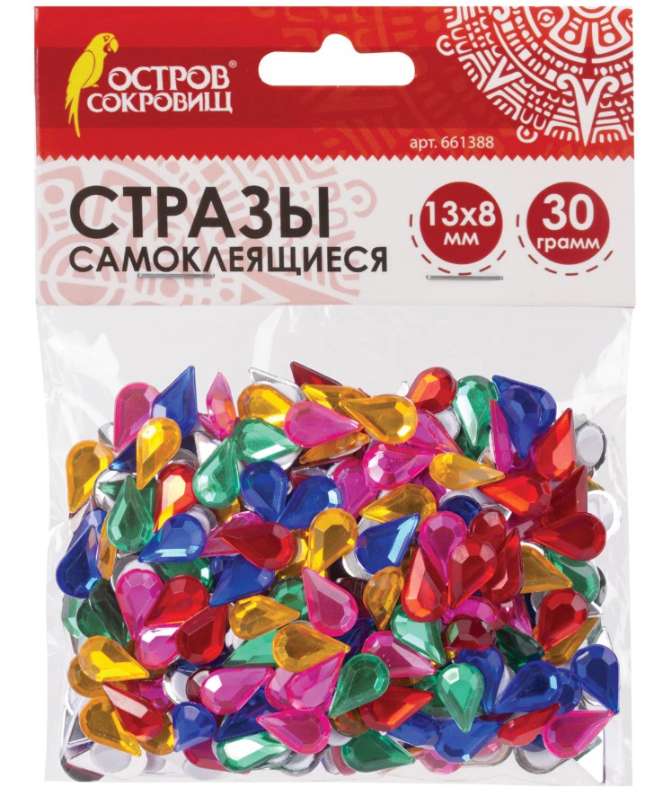 Стразы самоклеящиеся "Капля", 13*8 мм, 30 г, 5 цветов, ОСТРОВ СОКРОВИЩ, 661388