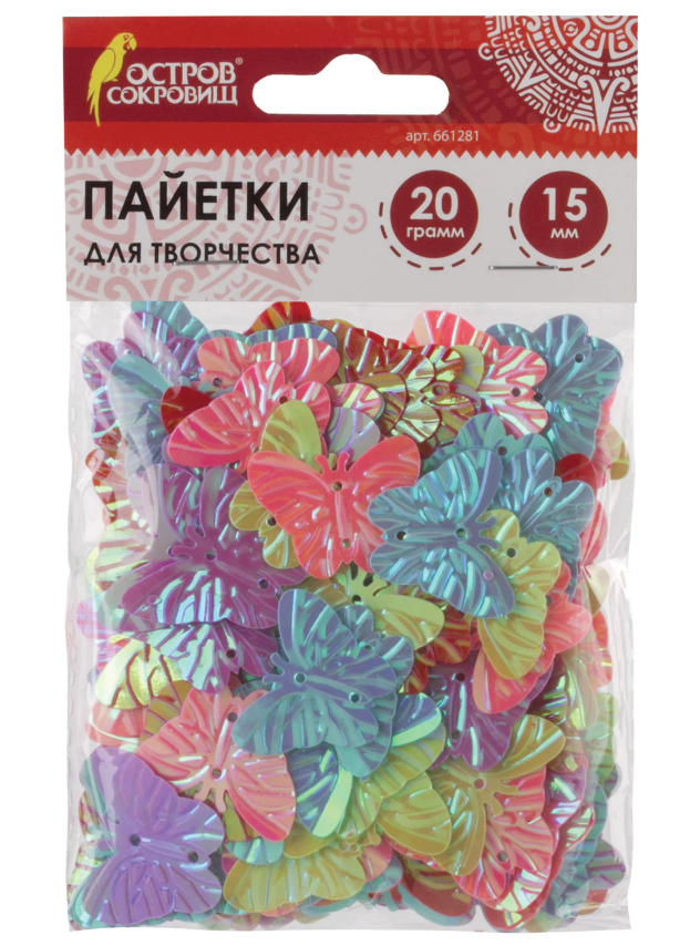 Пайетки для творчества "Бабочки", яркие, цвет ассорти, 5 цветов, 15 мм, 20 грамм, ОСТРОВ СОКРОВИЩ, 661281