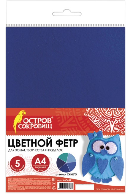 Набор цветного фетра 2 мм А4 5 листов 5 цветов BRAUBERG оттенки синего