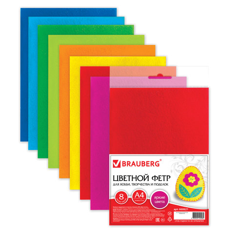 Набор цветного фетра 2 мм 8 листов 8 цветов BRAUBERG яркие цвета