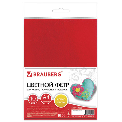 Набор цветного фетра 2 мм А4 10 листов 10 цветов BRAUBERG