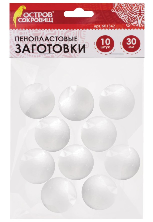 Пенопластовые заготовки для творчества "Шарики", 10 штук, 30 мм, ОСТРОВ СОКРОВИЩ, 661342