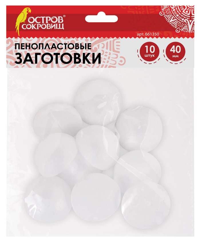 Пенопластовые заготовки для творчества "Полусферы", 10 штук, 40 мм, ОСТРОВ СОКРОВИЩ, 661350