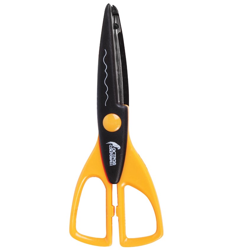 Ножницы незаменимы для творчества. Используются для вырезания деталей аппликаций и создания фигурного края поделок: открыток, страничек альбомов и блокнотов. Закругленные концы и пластиковые накладки обеспечивают безопасность при использовании.