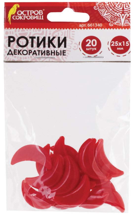 Ротики декоративные для творчества "Улыбка", 25*15 мм, 20 штук, красные, ОСТРОВ СОКРОВИЩ, 661340