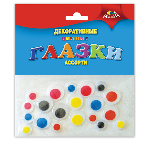 Набор для творчества АППЛИКА "Глазки декоративные" вращающиеся, цветные, 20 штук в ассортименте 660389