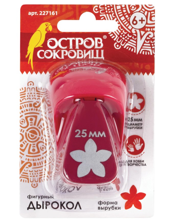 Дырокол фигурный "Цветок", диаметр вырезной фигуры 25 мм, ОСТРОВ СОКРОВИЩ, 227161