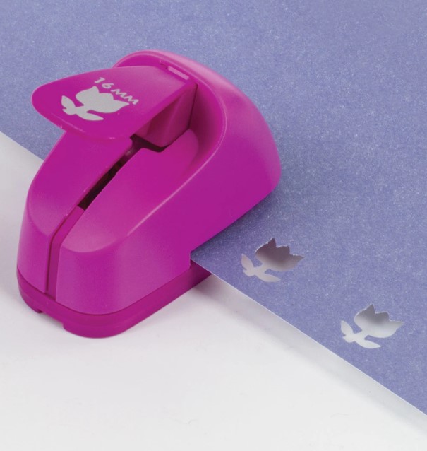 Фигурный дырокол пробивает отверстия в виде тюльпанов. При помощи такого дырокола легко и удобно создавать эффектные поделки и ажурные открытки. Фигурное конфетти можно использовать для декора и аппликаций. Режущие части закрыты пластмассовым корпусом, что обеспечивает безопасность для детей.