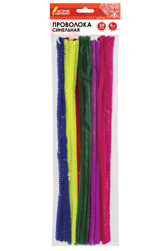 Проволока синельная для творчества "Пушистая", 6 цветов, 30 штук, 0,6*30 см, ОСТРОВ СОКРОВИЩ, 661521