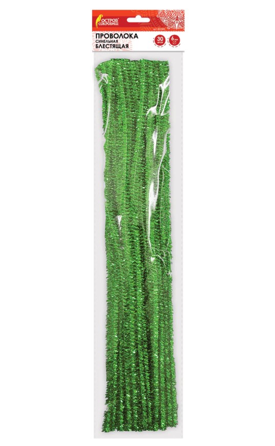 Проволока синельная для творчества "Блестящая", зеленая, 30 штук, 0,6*30 см, ОСТРОВ СОКРОВИЩ, 661542