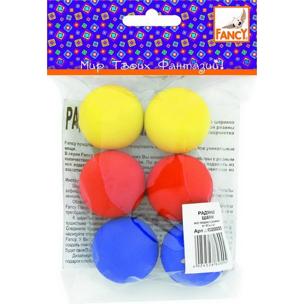 - шарик 6 шт., d=40 мм (цвета: красный, желтый, синий)