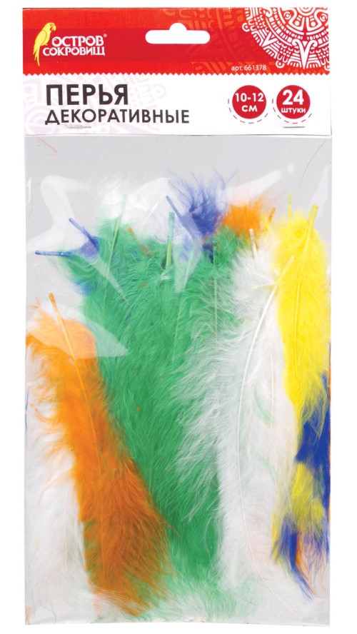 Перья декоративные страусиные, 10-12 см, 24 шт, 6 цветов, яркие, ассорти, ОСТРОВ СОКРОВИЩ, 661378