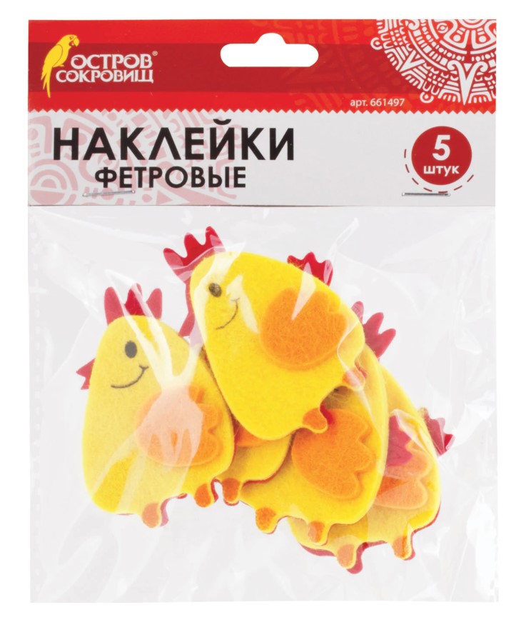 Наклейки из фетра "Цыплята", 5 штук, ОСТРОВ СОКРОВИЩ, 661497*