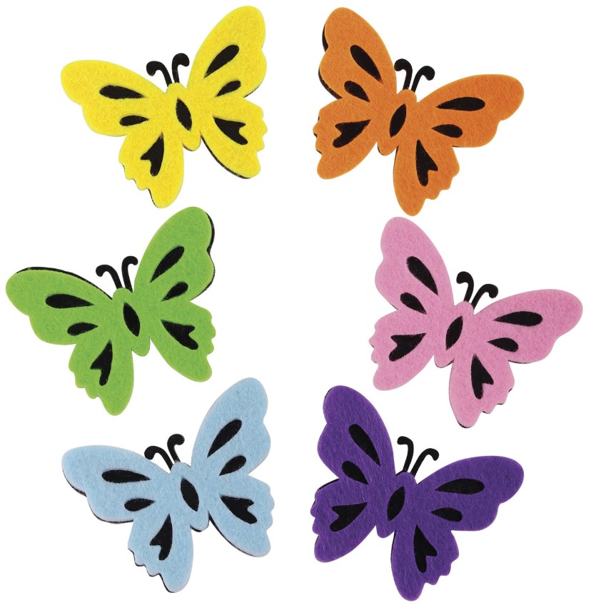 Наклейки из фетра "Бабочки", двухцветные, 6 штук, ассорти, ОСТРОВ СОКРОВИЩ, 661492
