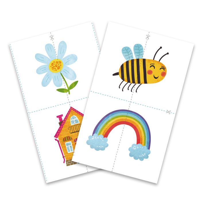 Серия развивающих игр «Разрезные карточки-половинки». Серия «Разрезные карточки-половинки» создана специально для первых занятий с детьми. Перед началом работы познакомьте ребёнка с содержимым. Затем аккуратно разрежьте развивающие карточки по пунктирным линиям и меткам. Вы получите 32 карточки, а значит, 64 половинки. Перемешайте карточки, разложите на столе детали картинок и предложите малышу самостоятельно соединить половинки. С этой игрой получать первые знания станет ещё интереснее!