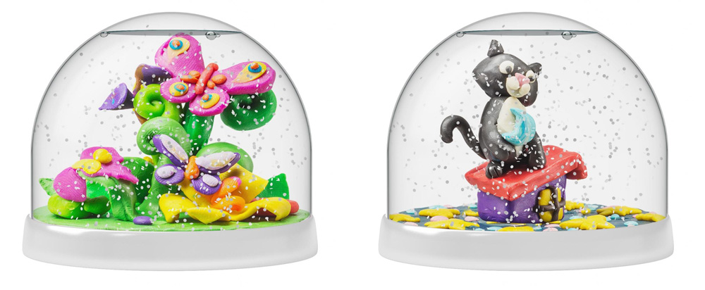 Готовые шары можно дарить близким, составлять из них коллекции или украшать ими интерьер. Материалов в наборе хватит на несколько шаров со снегом, так что не бойтесь экспериментировать. Благодаря инструкции на русском языке вы сможете не только сделать свою пластилиновую фигурку, но и вылепить композиции «Бабочка» и «Кот» с упаковки набора. Пошаговое руководство с иллюстрациями не даст вам ошибиться.