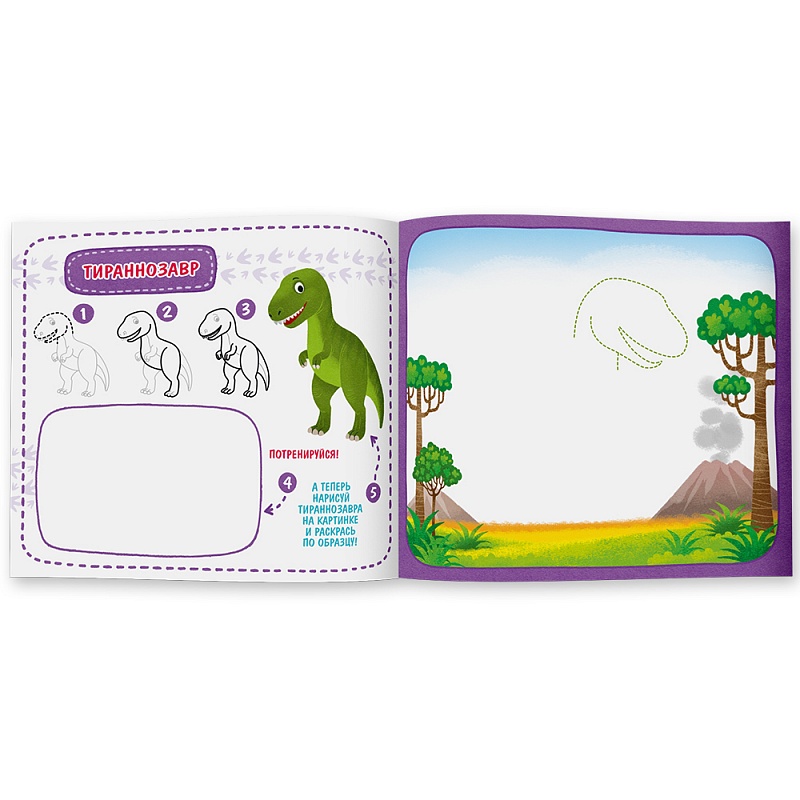 Хотите научить детей рисовать динозавров? Поверьте, это не так уж сложно. Главное, шаг за шагом следовать советам, которые вы найдете в книжке серии «РИСОВАЛКА». Всего 5 шагов и рисунок готов!