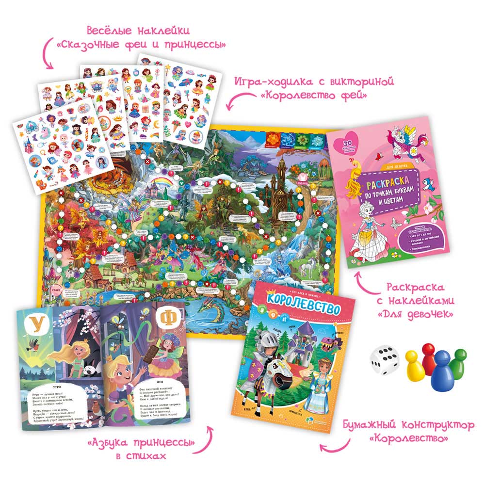 Большой подарок "Для девочки" (азбука + раскраска +наклейки + игра-ходилка + конструктор бумажный)