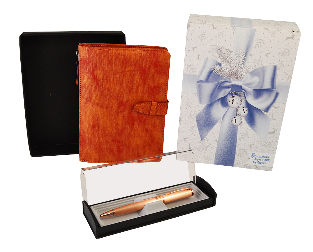 - В наборе: ежедневник в подарочной коробке, ручка в подарочном футляре
